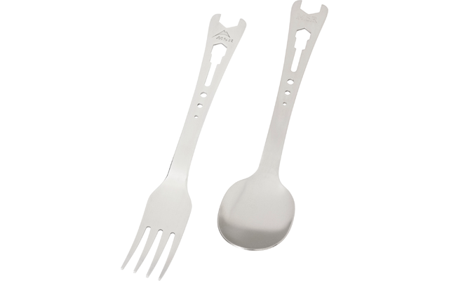 Diese robuste Gabel aus Edelstahl hat ein integriertes Düsen- und Kabelwerkzeug zur Wartung von MSR-Flüssigbrennstoffkochern unterwegs.