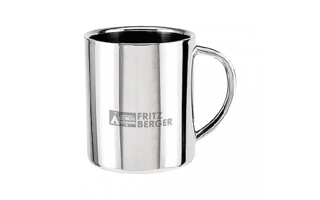 Doppelwandiger Thermobecher mit angelötetem Edelstahlgriff.