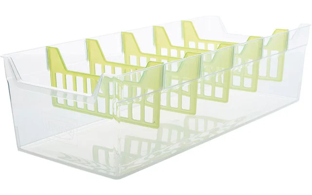 Leichter Gewürzbehälter zum Sortieren und Aufbewahren von Gewürzenstreuern oder Nachfüllpackungen. Mit herausnehmbaren Trennern zur idealen Bestückung.