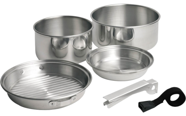 Mit seinem niedrigen Gewicht und kompakten Packmaß passt das Aluminium-Geschirrset in jeden Backpack.