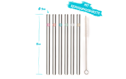 Deine Alternative! 6 Glastrinkhalme mit passender ReinigungsbĂĽrste. Deine Trinkhalme bestehen aus bruchfestem und geschmacksneutralem Borosilikatglas.