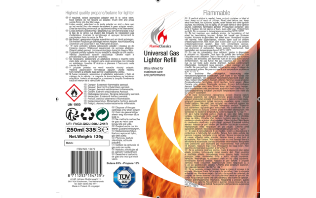 Nachfülldose mit 250 ml Universalfeuerzeuggas