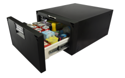 Kühlschublade mit Engel-Schwingkompressor. Die Maße sind an die gängigen Schubladen auf dem Markt angelehnt. Man kann den hinteren Kompressor bis zu 1,5 Meter von der Schublade entfernt montieren. Die Kühlschublade hat ein zirkulierendes Lüftungssystem mit dem die warme Luft hinter der Box weggeführt wird, so ist auch bei sehr warmer Umgebung eine perfekte Kühlung gewährleistet. Mit Innenbeleuchtung. Farbe schwarz. Inklusive Befestigungswinkel und Verlängerungen.