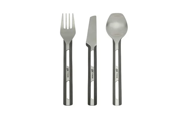 Dieses universell einsetzbare, robuste Besteck-Set aus Titan spart an der richtigen Stelle: Beim Gewicht, es ist extrem leicht und durch sein außergewöhnliches Design auch ein optischer Blickfang.