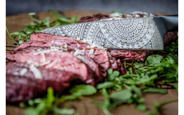 Gute, robuste Messer sind für den bekannten Tattoo Artist Henk Schiffmacher kein Neuland. Dieses Kochmesser ist aus einem Stück massivem deutschen Edelstahl gefertigt und mit einer speziellen Eisenoxidbehandlung geschwärzt. Und es wäre kein Messer von Schiffmacher ohne Tätowierung, oder? “Genau wie der Mensch hat auch das Messer eine Seele. Dieses polynesisch inspirierte Design verkörpert diese Seele und gibt ihr Kraft”.