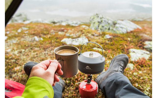 Dieser besonders leichte Teekessel aus Aluminium besticht durch seine Präzisions-Gießtechnologie und erzeugt dichten, gezielten Wasserdampf, der genau richtig ist, um die perfekte Tasse Kaffee zu erzeugen. Auch für Trinkgefäße mit kleiner Öffnung geeignet. Dank der tropfenfreien Tülle bleibt das Geschirr sauber. Der Deckel rutscht beim Gießen nicht weg und lässt sich dennoch einfach abnehmen. Der Griff bleibt ebenfalls aufrecht, vom heißen Kessel weg gerichtet und ist nicht zu heiß zum Anfassen. Die breite Öffnung des Teekessels erleichtert das Reinigen und ermöglicht das Verstauen eines kleinen Kochers und anderer Dinge im Inneren. Besonders für Grammzähler unter den Abenteurern geeignet, denn der Kessel ist ideal zum Aufkochen von Tütennahrung.