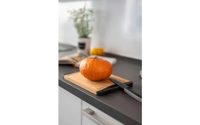 Sehr praktisch: die integrierte, umlaufende Saftrille – ideal fĂĽr Steak, Braten und saftige Gerichte. NatĂĽrlich kann das Schneidbrett auch direkt als originelle Servierplatte genutzt werden.